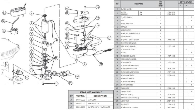 JABSCO® - Kit trasformazione del WC manuale in elettrico 29200 | ||||||