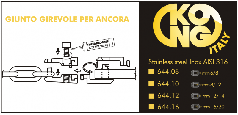 ■ Giunto girevole per ancora realizzato in acciaio inox AISI 316 di altissima qualità.