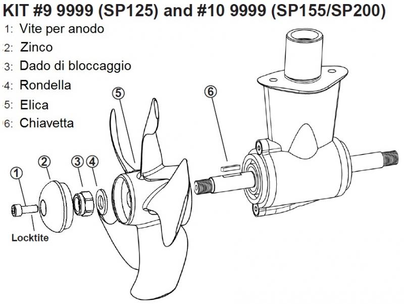 10 9999 Q-prop upgrade kit for SP155/200, 2 giranti, 2 anodi, viterie