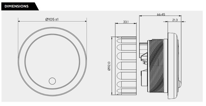 Dimensioni: 105 mm (esterno) 85 mm (foro di montaggio)
