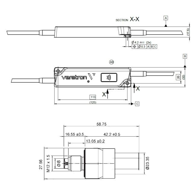 Dimensioni: 125 mm x 32 mm (+cavi)