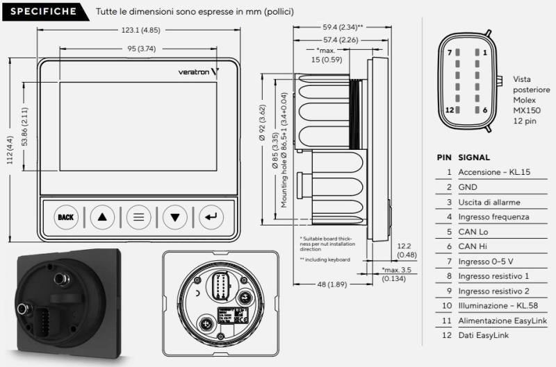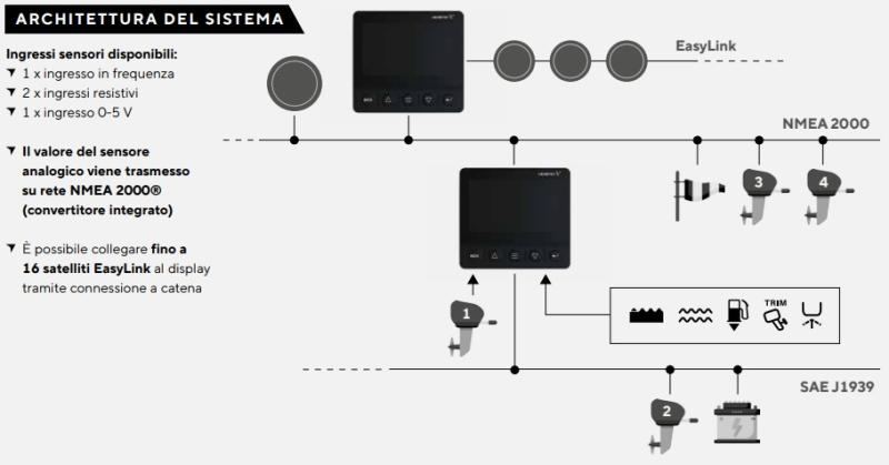 Porte analogiche 1x Ingresso frequenza 2x ingressi resistivi 1x Tensione (0-5 V) Connettività Ethernet, NMEA2000®, J1939, EasyLink