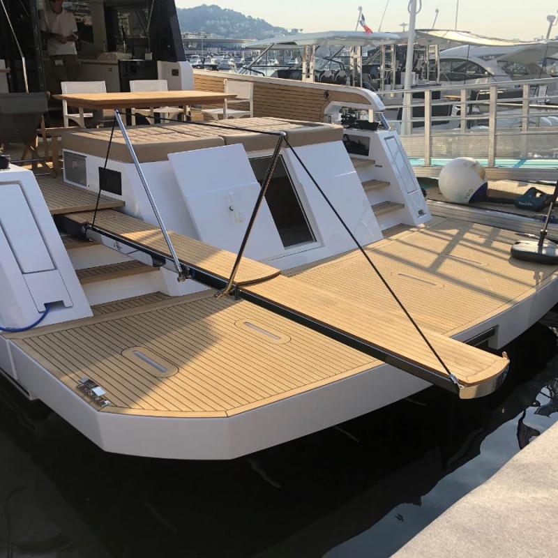 • Passerella telescopica rientrante a due stadi con funzioni automatiche • Struttura in acciaio inox verniciato o lucidato a specchio • Pedana di camminamento in materiale sintetico stabilizzato ai raggi UV,100% ecologico o in teak con inserti antiscivolo • Disponibile versione con carrello per il superamento del gradino • Box di alloggiamento in alluminio con movimentazione automatica del portello • Box di alloggiamento non a tenuta stagna • Staffe per il montaggio • Candelieri automatici con corda • Pompa manuale in caso di emergenza • Telecomando e pannello di controllo per il comando dal pozzetto • Lunghezze disponibili da 220 a 340 cm e soluzioni custom |