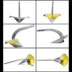 ■ Si ancora all’istante ■ Si pianta al primo contatto col fondale ■ Tiene in ogni circostanza ■ Ruota senza sganciarsi ■ Non si impiglia nella propria catena ■ Possiede un’altissima resistenza ■ Tenuta eccezionale ■ Efficace anche con poca catena ■ Gambo smontabile per un facile stivaggio invernale |