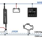 Questo dispositivo tradurrà tutti i dati del motore, trasmessi su un bus CAN SAE J1939, nello standard standard NMEA2000@, rendendo tutte le informazioni disponibili per qualsiasi display.