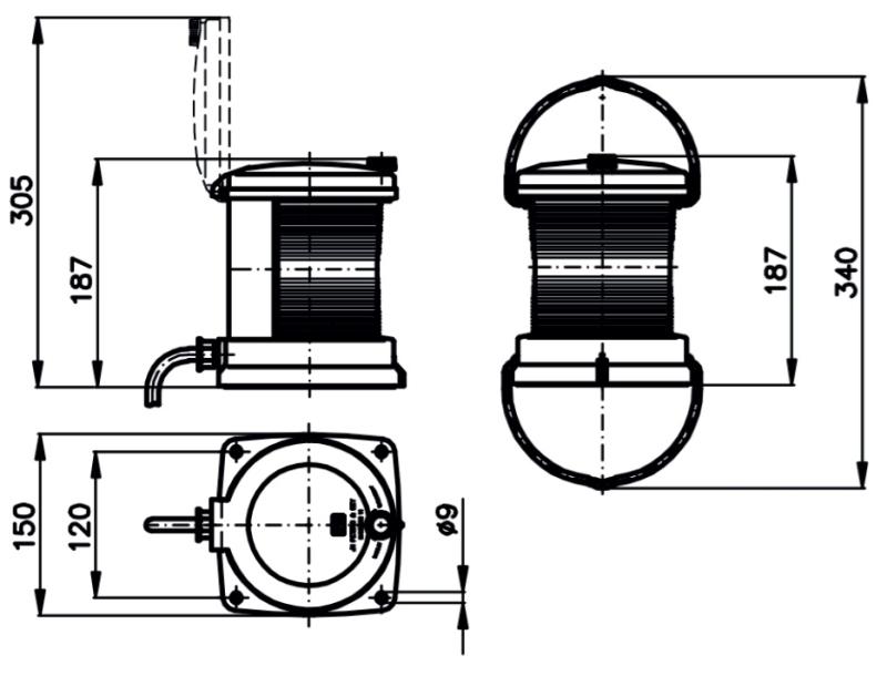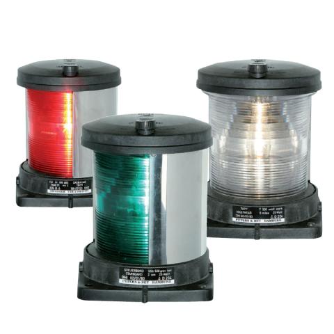 Serie 500 – Le luci di navigazione tipo 500 sono progettate per tutte le imbarcazioni di lunghezza compresa tra 20 metri e 50 metri, secondo i seguenti standard: