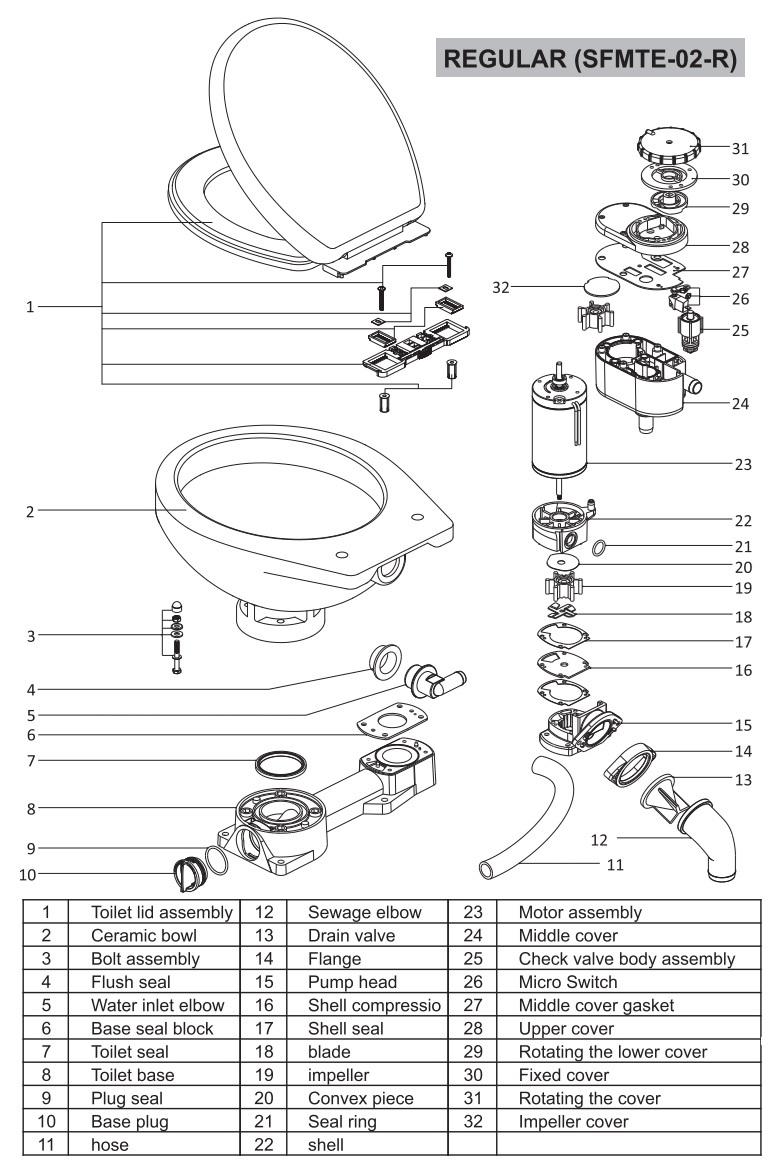 SEAFLO® - Electric Marine Toilet – con Tazza REGULAR 12V o 24V
