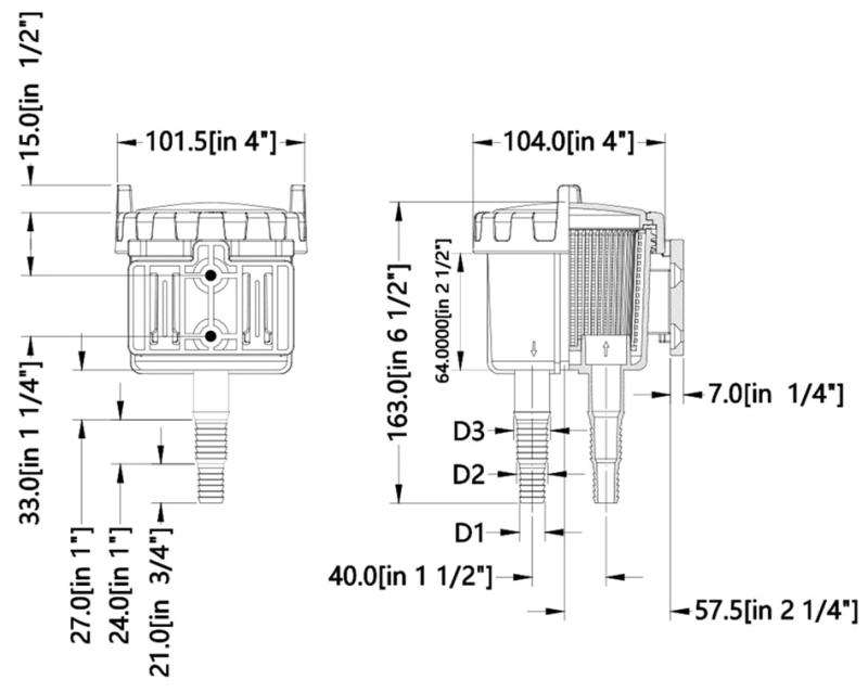 D1: 25.4 mm(1") 25mm 91 L/min. 24 GPM US