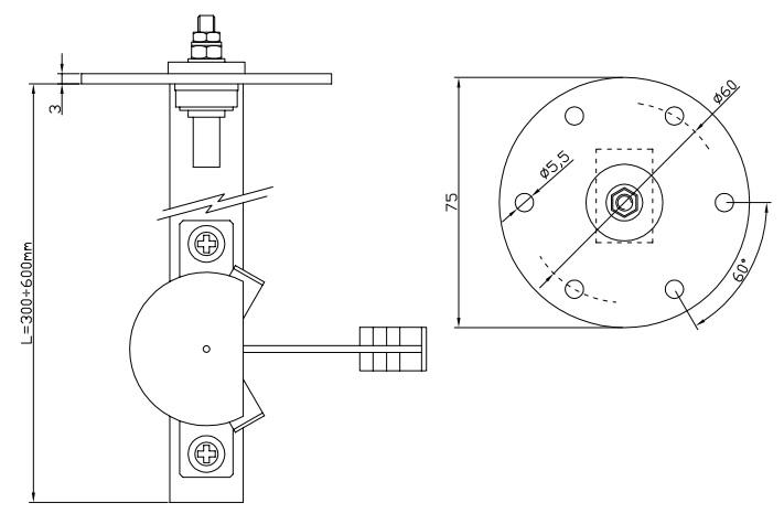Il sensore di livello a braccio, grazie al suo sistema di funzionamento ed alla lunghezza regolabile, può essere installato su ogni tipo di serbatoio dotato di attacco con flangia Ø 75 mm da 6 fori e profondità compresa tra 300 a 600 mm . Utilizzabile per gasolio, olio o benzina. Contatto di allarme basso livello opzionale posizionato a circa il 10%.