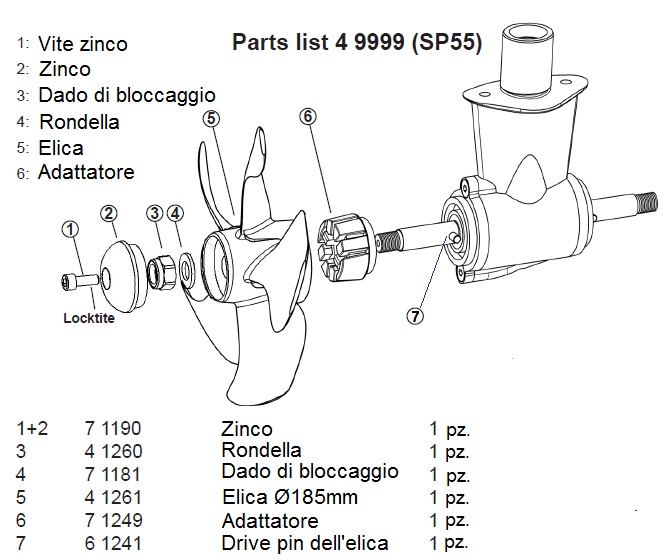 4 9999 Q-prop upgrade kit for SP55, 1 girante, 1 anodo, viterie