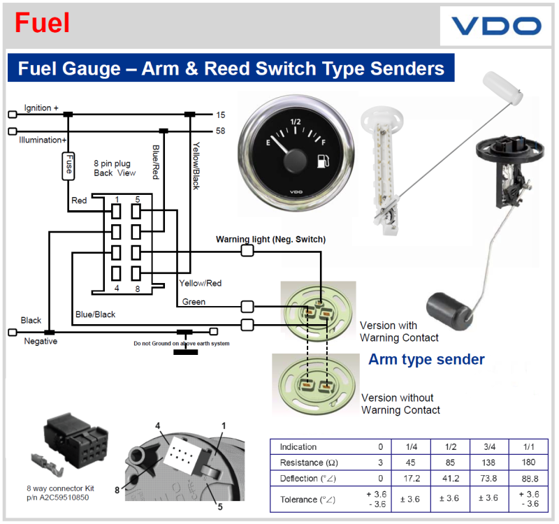 • Resistance empty-full: 2.5 - 180.0 Ohm