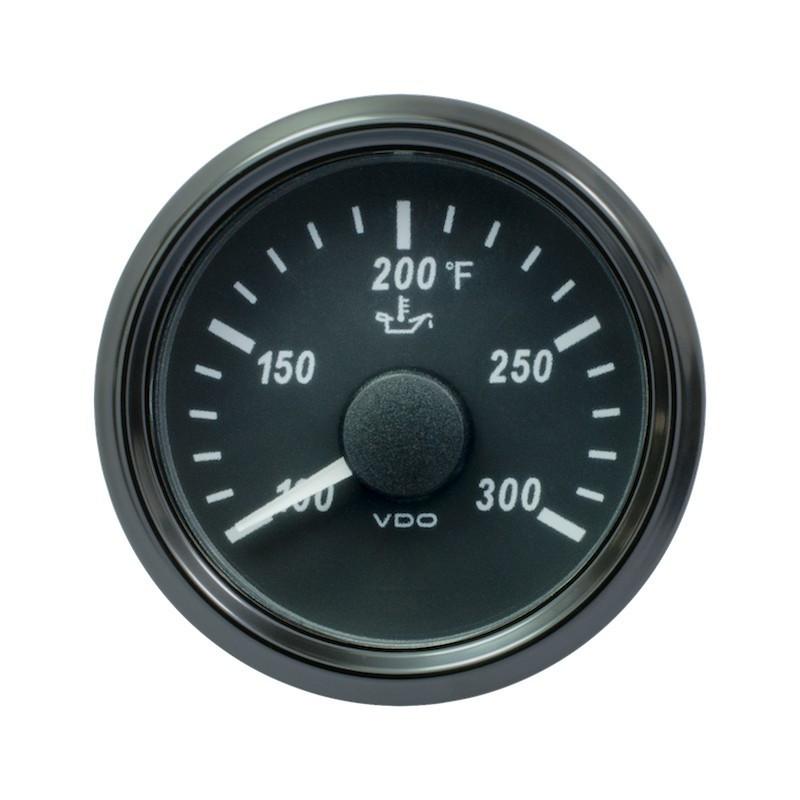 VDO SingleViu 2426 Engine Oil Temperature 300°F Black 52mm White Lighted w/ Red Pointer