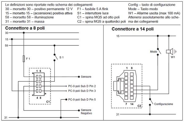Connessione: Connettori Hirschmann MQS a 8 e 14 poli