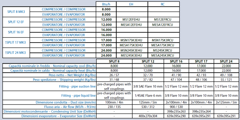 EVAPORATORE SPLIT 12 EH EF 230/1/50-60